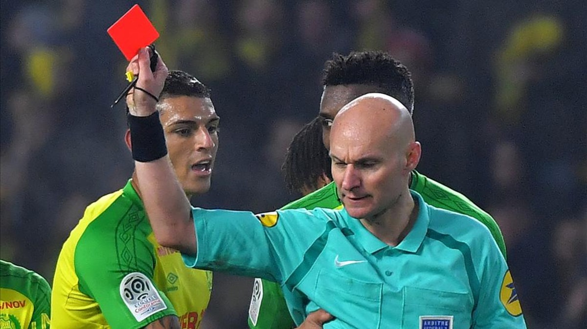 Gjyqtari që tentoi të godasë një futbollist të Nantesit para se ta përjashtonte nga ndeshja me Paris Saint-Germainin, është suspenduar deri në një njoftim të radhës nga Federata Franceze e Futbollit.