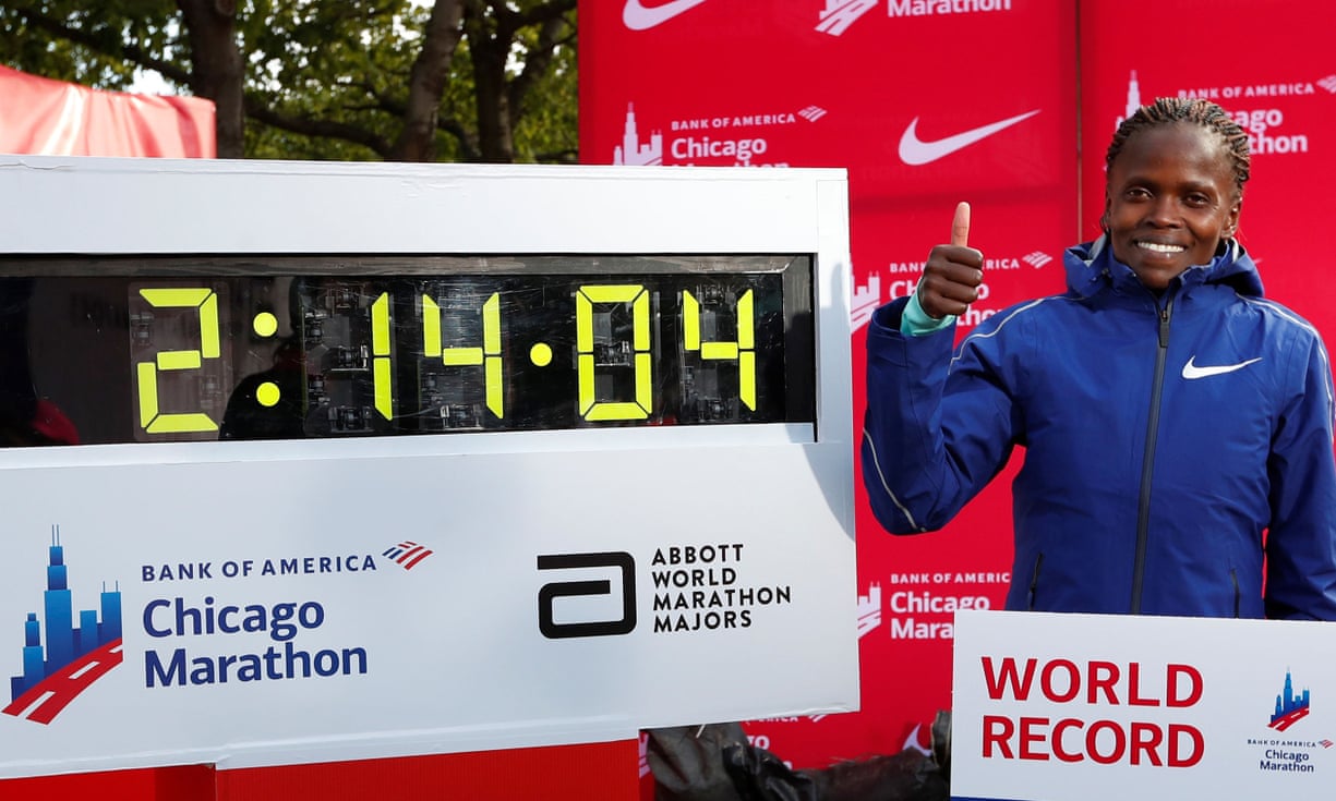 25-vjeçarja arriti të përfundojë maratonën në Chicago për dy orë, 14 minuta e 4 sekonda, duke tejkaluar rekordin e Paula Radcliffe, që ishte në fuqi qe 16 vjet, që kur ajo fitoi në Maratonën e Londrës më 2003.