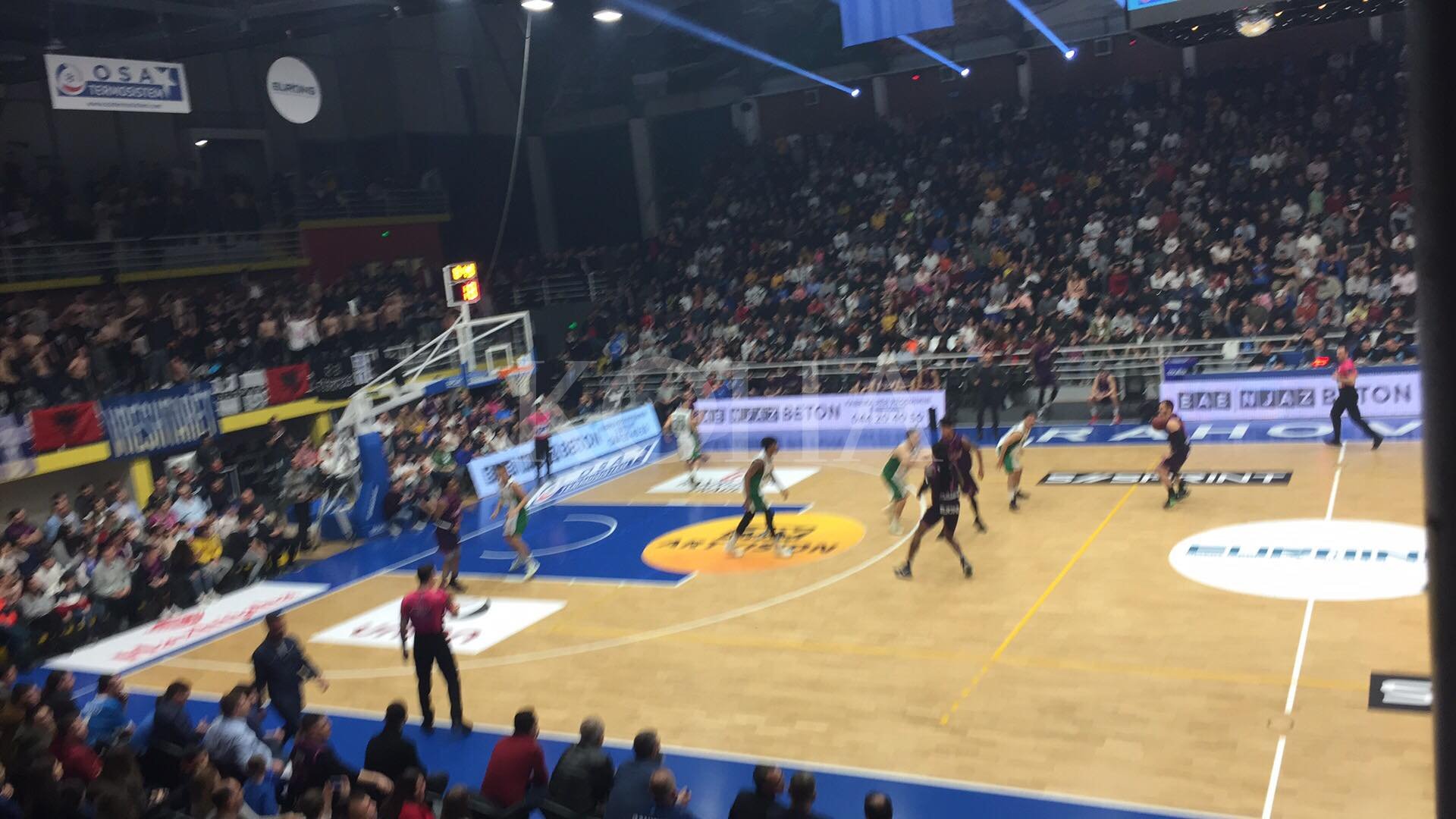 Kjo pas hedhjeve të gjësendeve në parket nga tifozët e dy klubeve.