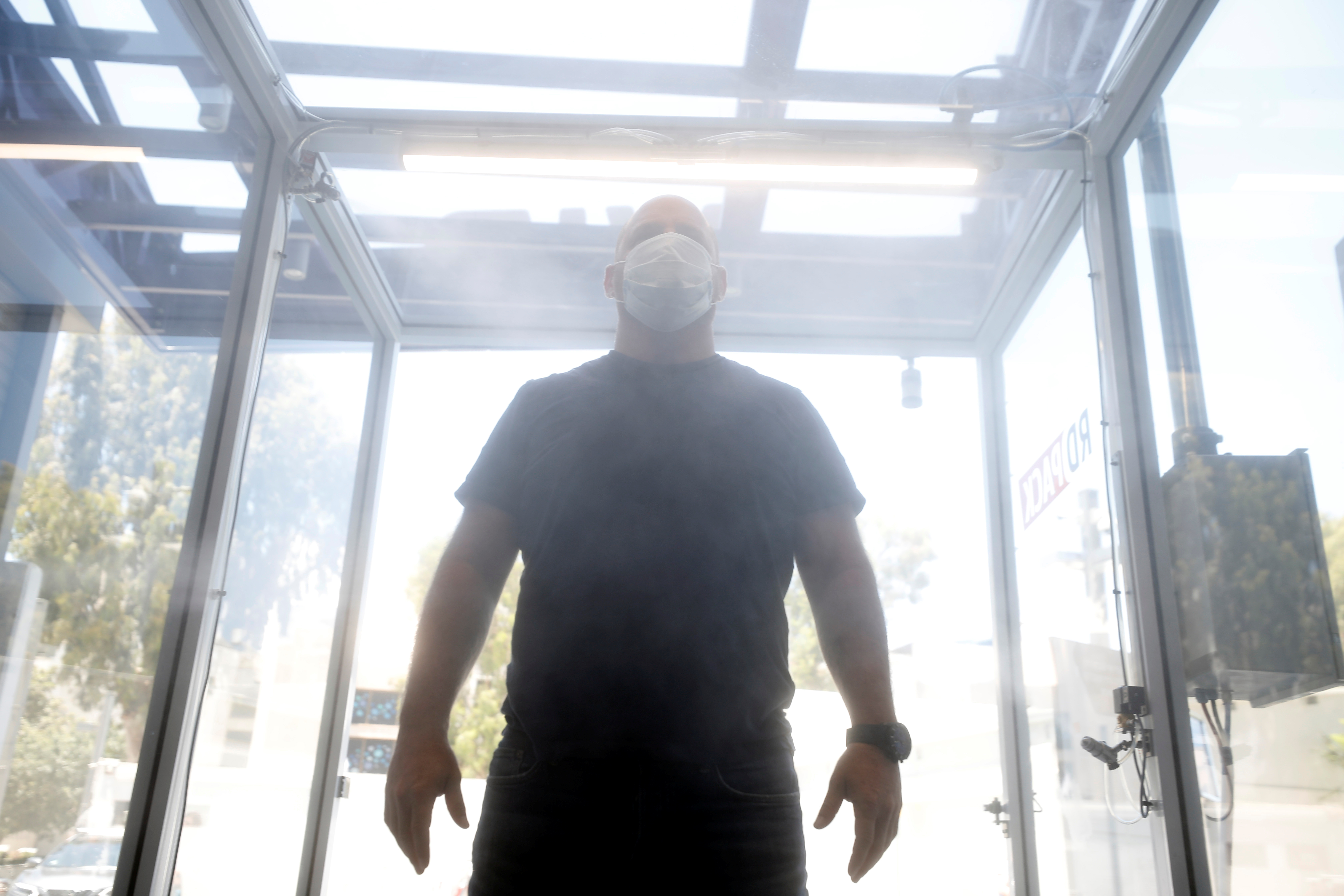 RD Pack, një kompani izraelite e specializuar në automate, ka montuar sistemin e dezinfektimit në tunel. Një makinë e pompimit të ujit ndjenë kur dikush futet dhe fillon spërkatja për 15 sekonda, duke dezinfektuar lojtarët dhe valigjet e tyre.