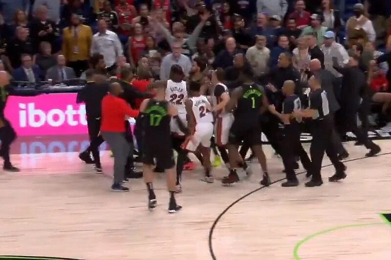Ndeshja e NBA mes New Orleans Pelicans dhe Miami Heat u shënua nga një përleshjeve masive dhe kaos të madh që ndodhi në parket, ku katër basketbollistë u përjashtuan.