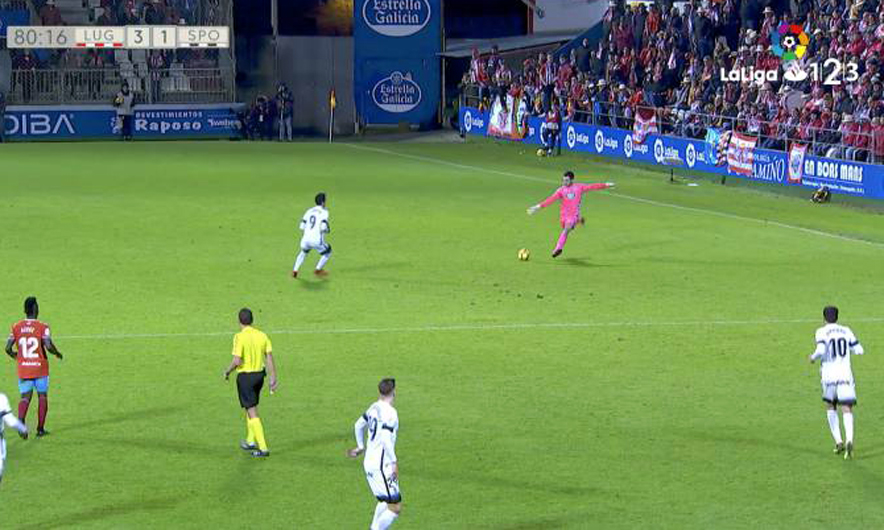 Juan Carlos pa që homologu i tij kishte dalë nga porta dhe nuk ngurroi të lëshonte një “bombë” nga mesfusha e skuadrës së tij, për të shënuar golin e tretë ndaj Sporting Gijon, transmeton tch.