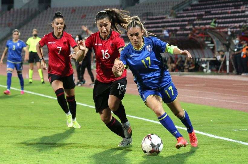 Kristina Maksuti në minutën e 19-të, ka zhbllokuar rezultatin në ndeshjen e Grupit F, që po zhvillohet në stadiumin “Fadil Vokrri” në Prishtinë.