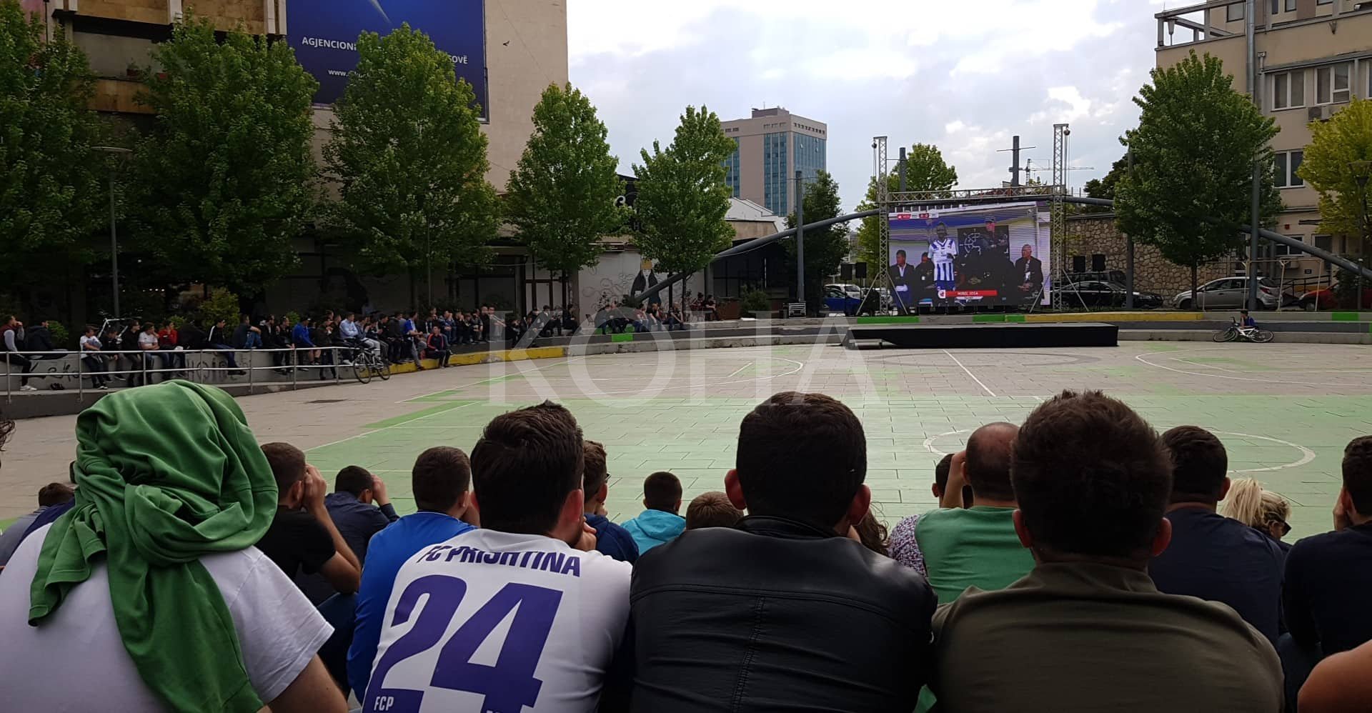 Shumë shikues janë duke e përcjellë nga sheshi “Zahir Pajaziti” në Prishtinë përballjen e klubit të Prishtinës me Feronikelin në Drenas, ndeshje e xhiros së fundit në Superligë e që do të përcaktojë kampionin e ri në Kosovë.