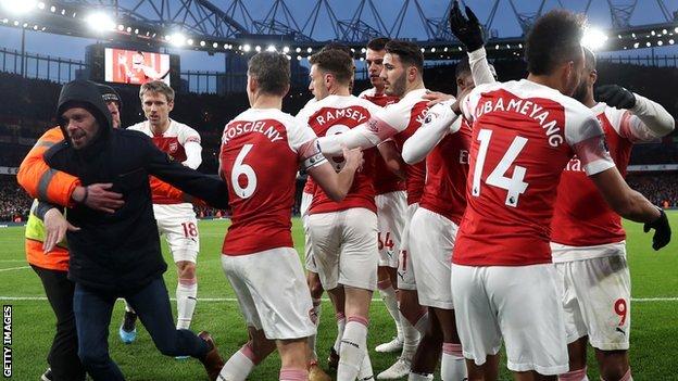 Pasi shtyu Smallingun, tifozi shkoi te lojtarët e Arsenalit që po festonin golin.
