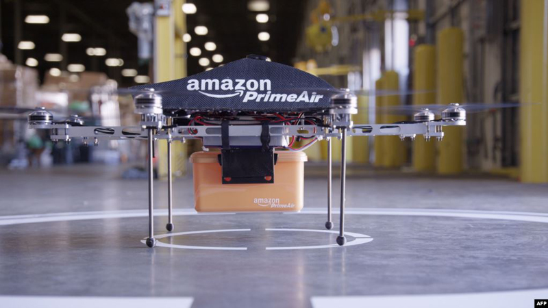Një numër kompanish, sikurse kompania simotër e gjigantit Google, Alpabet, janë duke punuar në shërbimin e dërgesave përmes dronëve. Amazon nuk ka thënë ende se kur pret të përdorë dronët për dërgesa te konsumatorët. Në dhjetor të vitit 2013, shefi dhe themeluesi i kompanisë Amazon, Jeff Bezos, pati thënë në një intervistë televizive se dronët do të shkojnë nëpër shtëpitë e konsumatorëve brenda pesë vjetëve./REL
