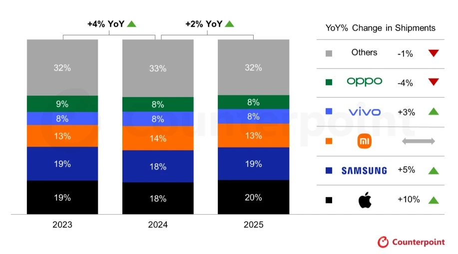 Analisti i Counterpoint, Varun Mishra, thekson se ky sukses është mbështetur nga kërkesa solide në tregjet në zhvillim, si dhe nga shitjet e fuqishme të serisë së re iPhone 17.
