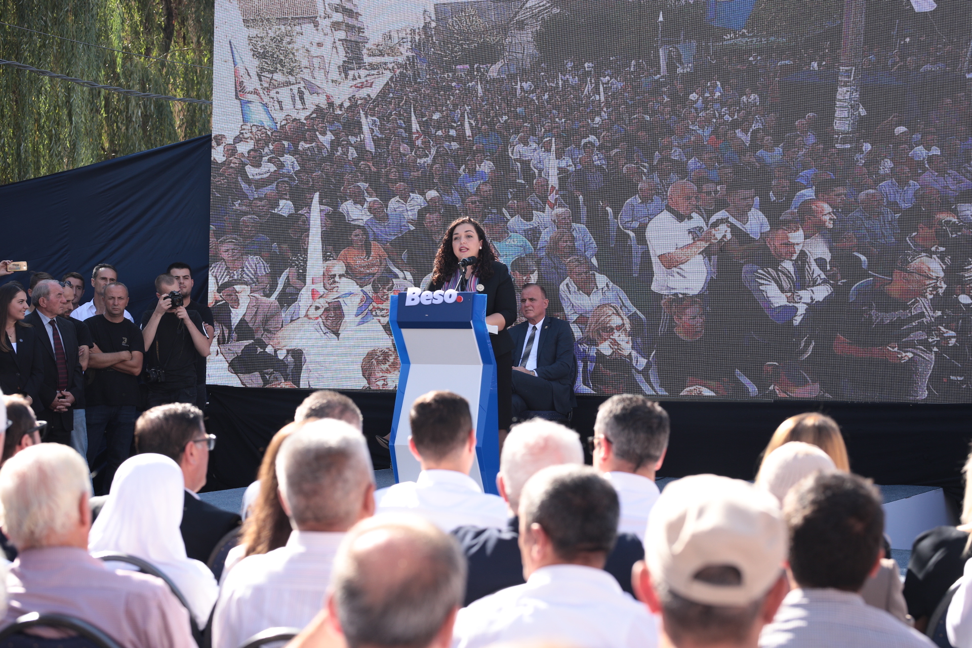 “Ashtu siç e keni rikthye LDK-në në pushtet në Vushtrri, kur të tjerët nuk e besonin një gjë të tillë, ashtu do ta kthejmë LDK-në në pushtet edhe në qeveri. Dëshmojani të gjithëve më 6 tetor që fitorja jonë, jo vetëm që është e mundur, por do të jetë aq e thellë saqë nuk do t'i lusim tjerët që të vijnë me neve në qeveri. LDK angazhohet për shtet të pavarur e sovran dhe në miqësi me SHBA-të. Vushtrria nuk i do të tillët që Amerika thoshte se ua kanë ngulur thikën pas shpinë. Me mua si kryeministre Kosova nuk do ta humbasë asnjë centimetër të territorit të Kosovës dhe askush nuk mund të formojë shtet mbi shtetin e Kosovës”, tha Osmani.
