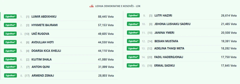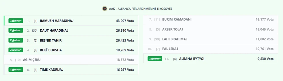 Edhe te AAK-ja Albana Bytyqi ka hyrë në Kuvend me kuotë, edhe pse Agim Çeku, Burim Ramadani, Arbër Tolaj, Lahi Brahimaj dhe Pal Lekaj, kanë vota më shumë se ajo.
