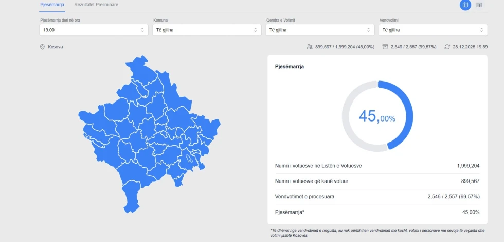 Zgjedhjet parlamentare të 28 dhjetorit kanë hyrë në histori sa i përket daljes së qytetarëve në vendvotimet brenda Kosovës. Sipas procesimit të më shumë se 99.57 për qind të vendvotimeve, të drejtën e votës e kanë shfrytëzuar 899, 567 qytetarë.